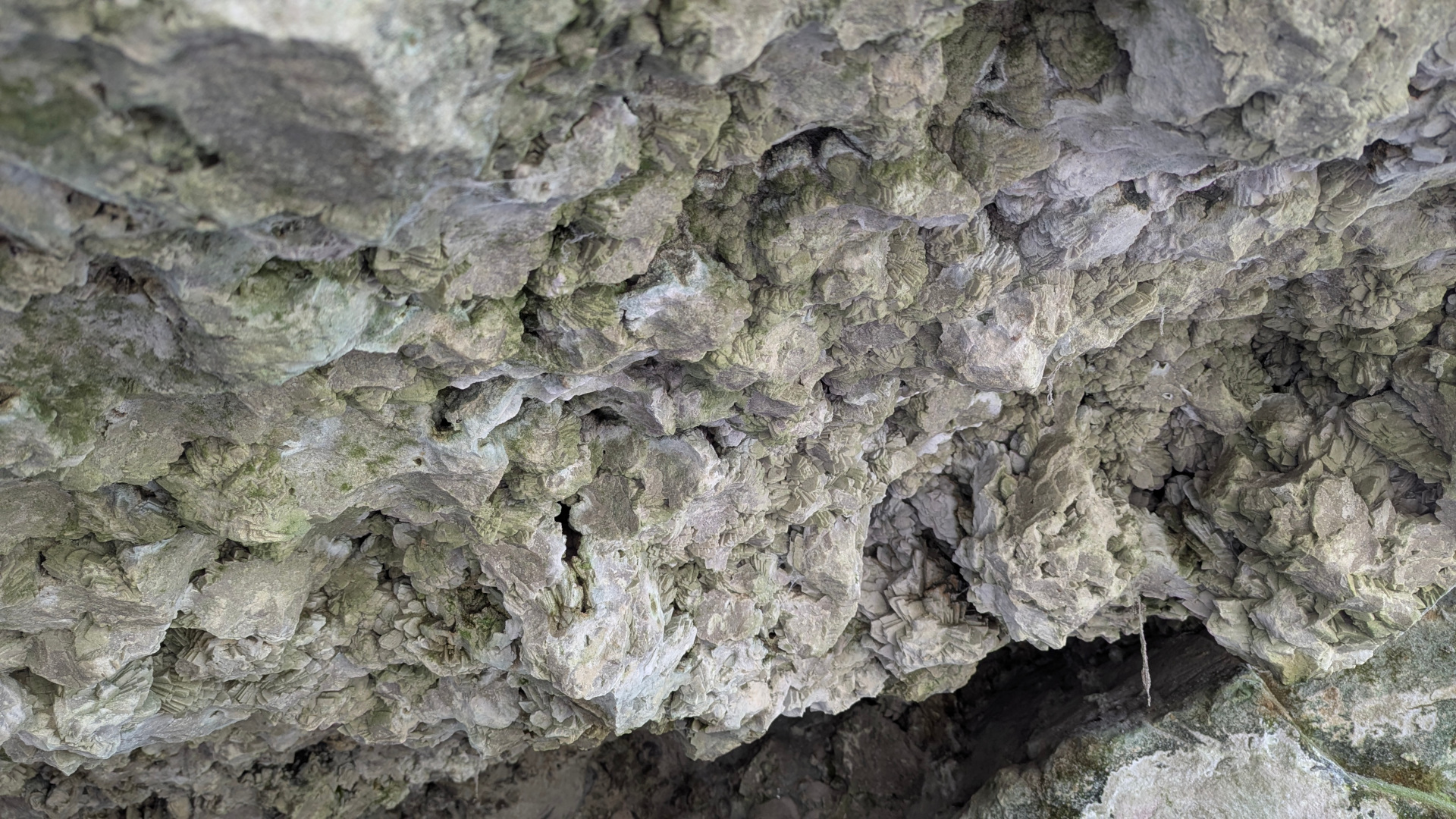 - light-colored formations ranging from white to slightly bluish tones